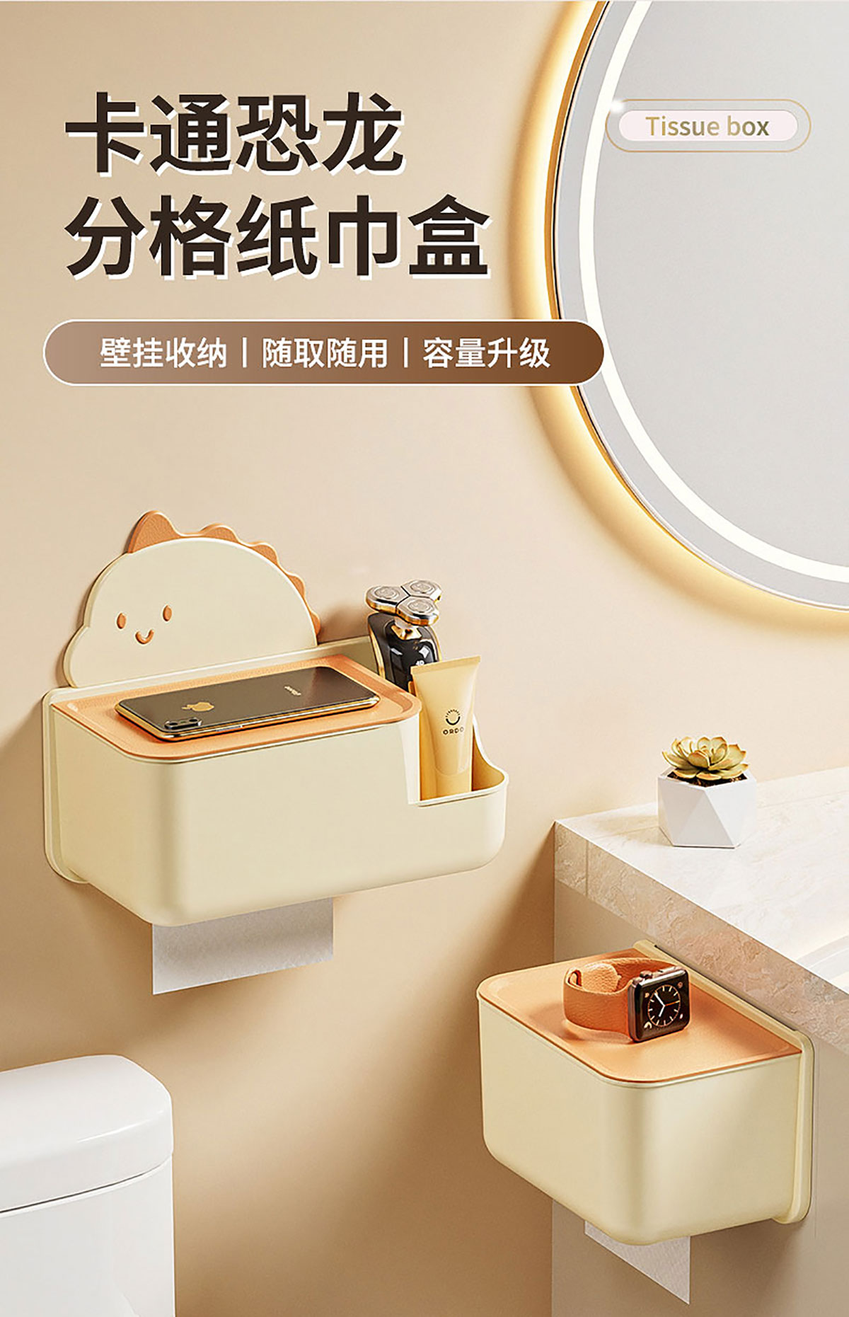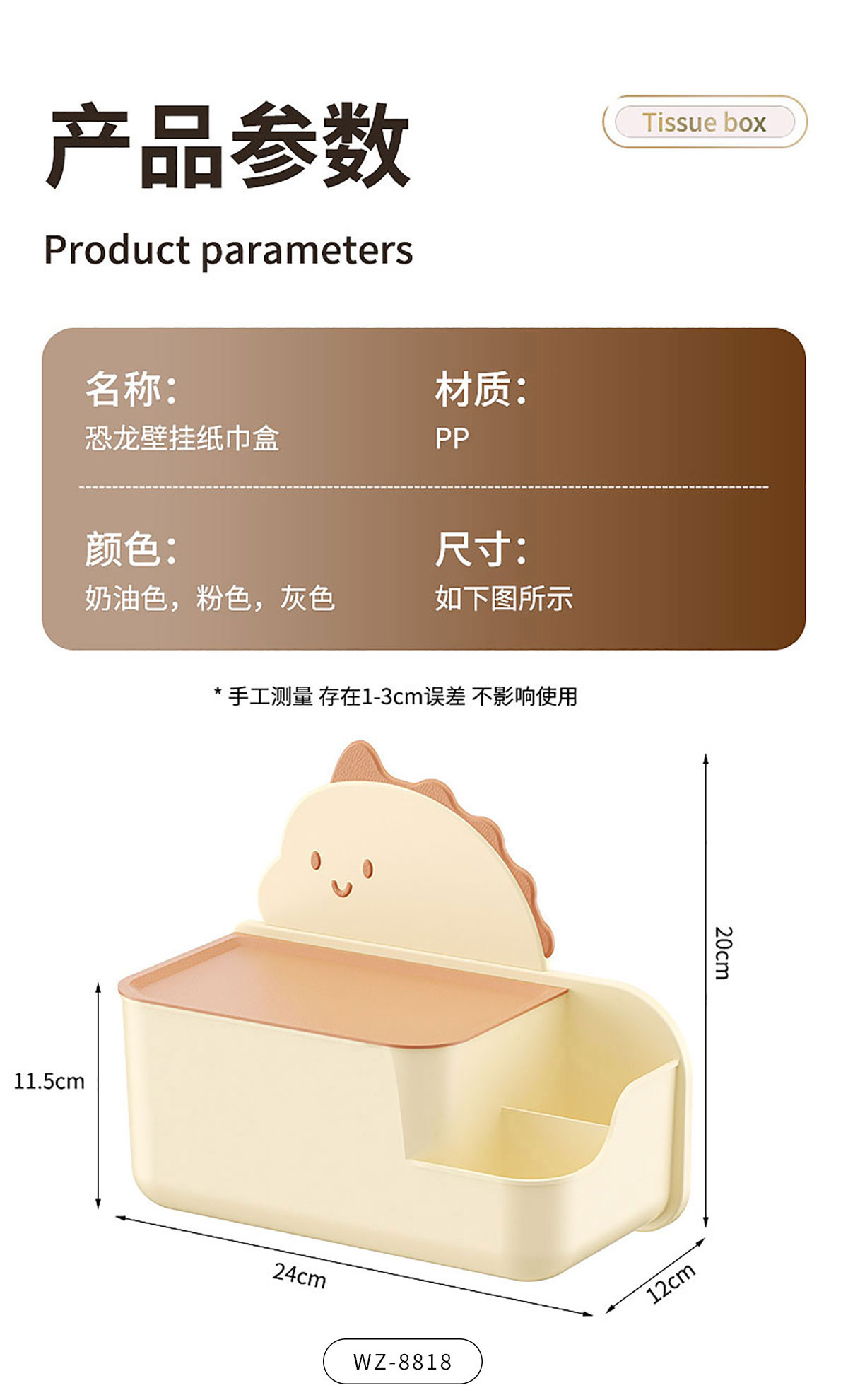 恐龍壁掛紙巾盒小號/大號