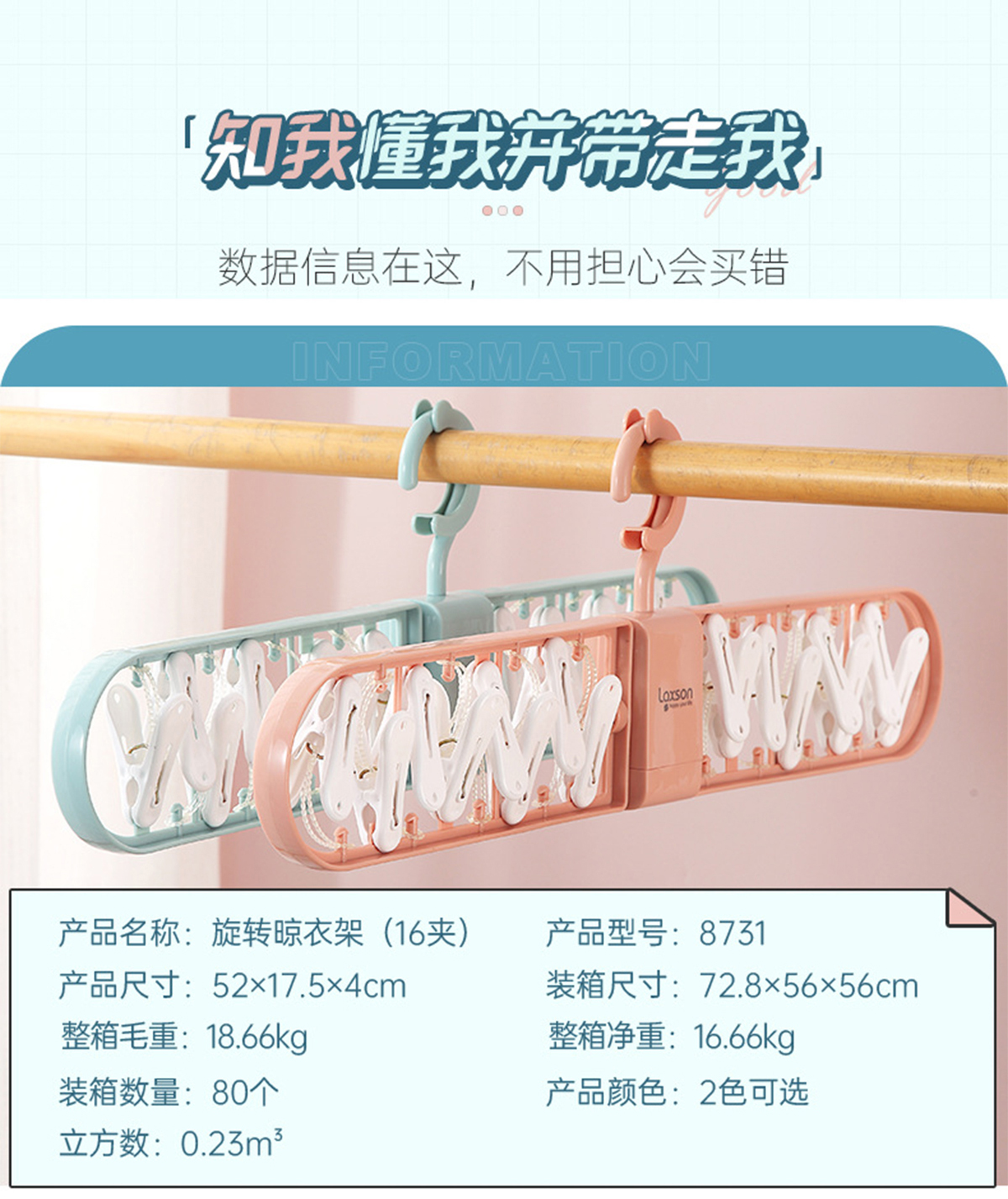 旋轉晾衣架16夾 2023年新色